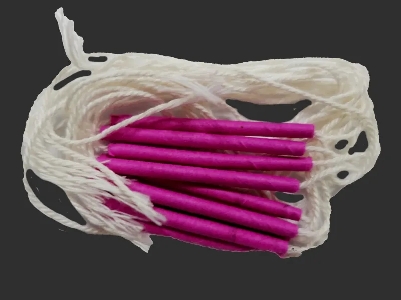 Strzelający sznurek. Opakowanie zawiera 12 szt sznurków. Pociągnięcie za przeciwległe końcówki sznurka powoduje wystrzał