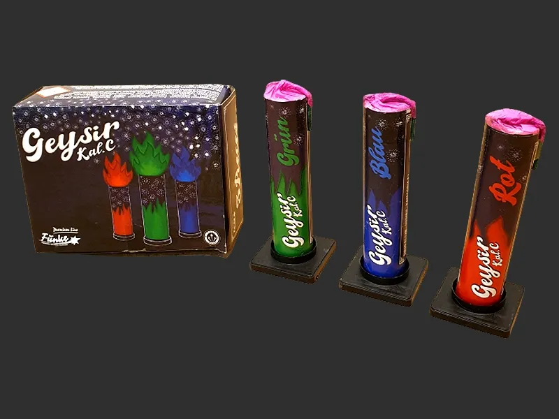 3 szt. w opakowaniu. Czerwona, zielona, niebieska flara + wystrzał cracklingowy.