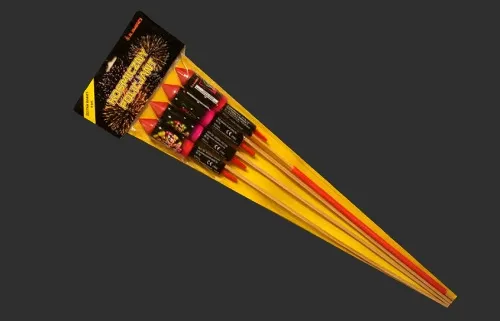 Musi być sprzedawane w opakowaniu. Tylko do stosowania na wolnym powietrzu. Minimalna bezpieczna odległość: 8m. Unikać przeszkód nad wyrobem. Zagłębić rurę-wyrzutnię w miękki grunt lub przymocować do słupka i lekko pochylić w stronę przeciwną do widzów. Włożyć patyk rakiety do rury-wyrzutni. Usunąć osłonę systemu inicjującego. Stać z boku podczas zapalania końca systemu inicjującego i oddalić się natychmiast na odległość co najmniej 8 m. Widzowie powinni znajdować się w odległości co najmniej 8m. Zakaz sprzedaży osobom poniżej 18-go roku życia! Stosować na niepalnej powierzchni! NIE STOSOWANIE SIĘ DO INSTRUKCJI GROZI ŚMIERCIĄ LUB KALECTWEM!