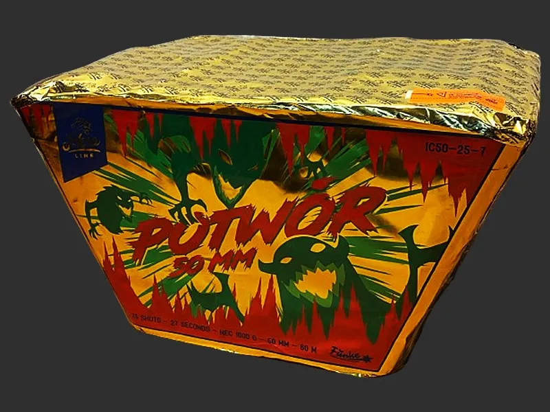 Wyrób zawiera dwa systemy inicjujące. Tylko do stosowania na wolnym powietrzu. Minimalna bezpieczna odległość: 15 m. Unikać przeszkód nad wyrobem. Nie odpalać w pobliżu wysokich budynków, drzew lub podobnych. Znaleźć pierwszy system inicjujący i usunąć osłonę systemu inicjującego. Postawić baterię na płaskim gruncie. UPEWNIĆ SIĘ, ŻE ŻADNA CZĘŚĆ CIAŁA NIE ZNAJDUJE SIĘ NAD WYROBEM LUB KIERUNKIEM EFEKTU. Stać z boku podczas zapalania końca systemu inicjującego i oddalić się natychmiast na odległość co najmniej 15 m. W przypadku, gdy wyrób nie działa kompletnie, należy odczekać 15 minut przed powrotem do niego, znaleźć system inicjujący rezerwowy i powtórzyć procedurę odpalania opisaną powyżej. Widzowie powinni znajdować się w odległości co najmniej 25m. Zakaz sprzedaży osobom poniżej 18-go roku życia! Stosować na niepalnej powierzchni! NIE STOSOWANIE SIĘ DO INSTRUKCJI GROZI ŚMIERCIĄ LUB KALECTWEM!