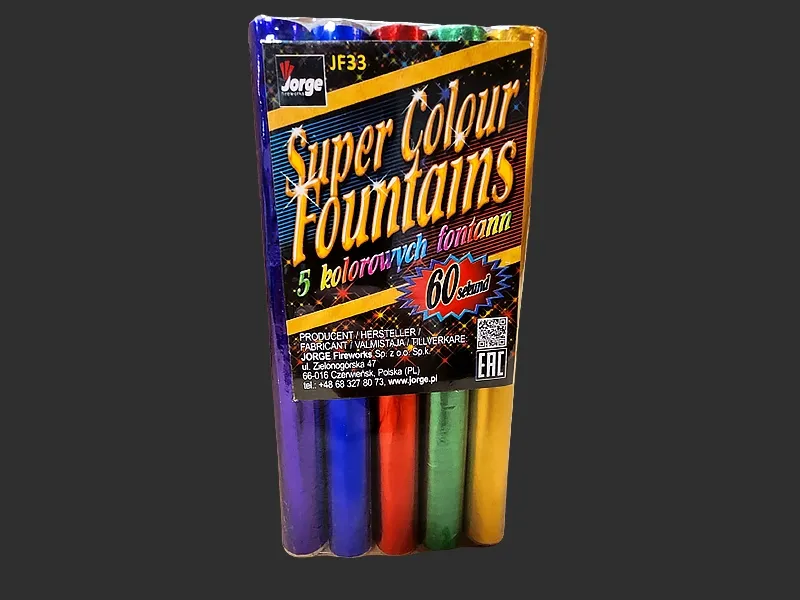 Zestaw kolorowych fontann od firmy Jorge. 5 różych kolorów.