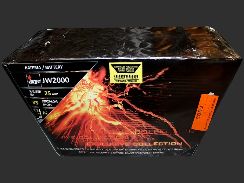 Wyrób zawiera dwa systemy inicjujące. Tylko do stosowania na wolnym powietrzu. Minimalna bezpieczna odległość: 15 m. Unikać przeszkód nad wyrobem. Nie odpalać w pobliżu wysokich budynków, drzew lub podobnych. Znaleźć pierwszy system inicjujący i usunąć osłonę systemu inicjującego. Postawić baterię na płaskim gruncie. UPEWNIĆ SIĘ, ŻE ŻADNA CZĘŚĆ CIAŁA NIE ZNAJDUJE SIĘ NAD WYROBEM LUB KIERUNKIEM EFEKTU. Stać z boku podczas zapalania końca systemu inicjującego i oddalić się natychmiast na odległość co najmniej 15 m. W przypadku, gdy wyrób nie działa kompletnie, należy odczekać 15 minut przed powrotem do niego, znaleźć system inicjujący rezerwowy i powtórzyć procedurę odpalania opisaną powyżej. Widzowie powinni znajdować się w odległości co najmniej 25m. Zakaz sprzedaży osobom poniżej 18-go roku życia! Stosować na niepalnej powierzchni! NIE STOSOWANIE SIĘ DO INSTRUKCJI GROZI ŚMIERCIĄ LUB KALECTWEM!