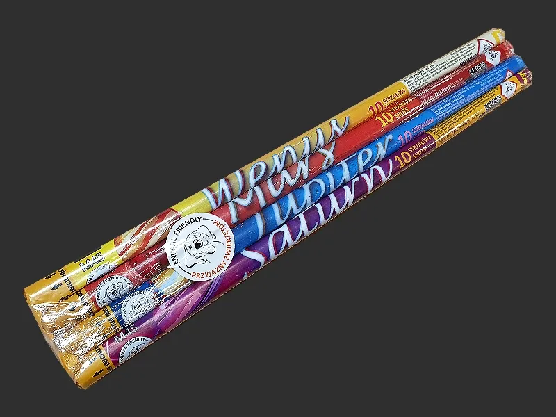 Zestaw 4 rzymskich ogni po 10 strzałów każdy! Efekt: Trzeszczące komety, Kolorowe komety.