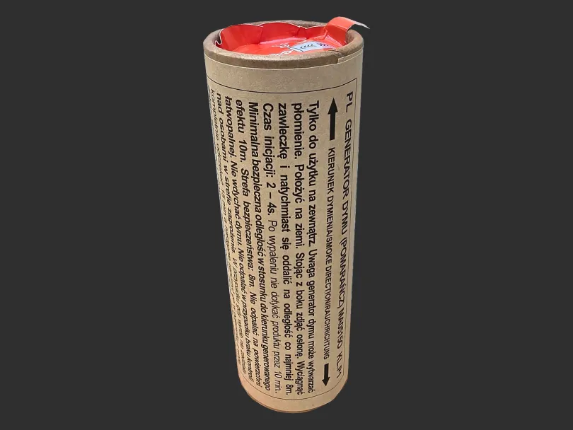 Dwustronny generator dymu o intensywnym pomarańczowym zadymieniu. Bardzo dobra jakość i duże zadymienie. Idealne do ASG i na Paintball lub dowolne imprezy plenerowe. Produkt odpalany za pośrednictwem pociągnięcia zawleczki. Czas działania: ok. 60 sek