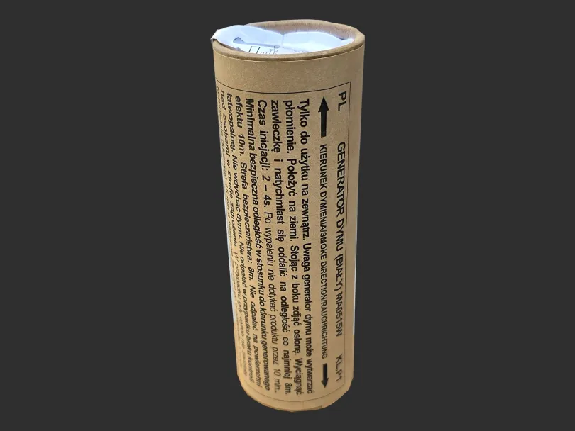 Produkt odpalany za pośrednictwem pociągnięcia zawleczki. Czas działania: ok. 60 sek