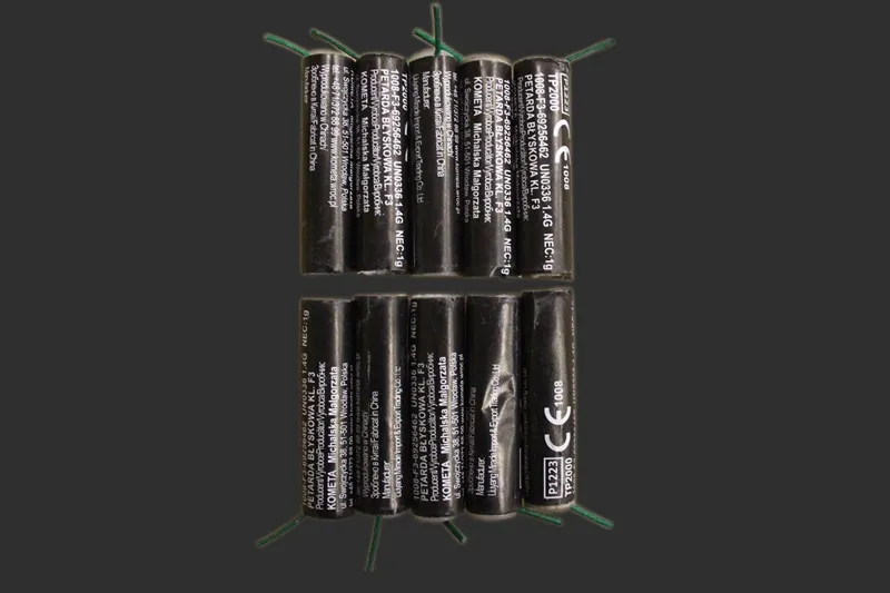 Musi być sprzedawane w opakowaniu. Tylko do stosowania na wolnym powietrzu. Minimalna bezpieczna odległość: 8m. Położyć pojedynczo na ziemi. Stojąc z boku, zapalić system inicjujący na jego końcu i oddalić się natychmiast na odległość co najmniej 8 m. Widzowie powinni znajdować się w odległości co najmniej 8m. Zakaz sprzedaży osobom poniżej 18-go roku życia! Stosować na niepalnej powierzchni!