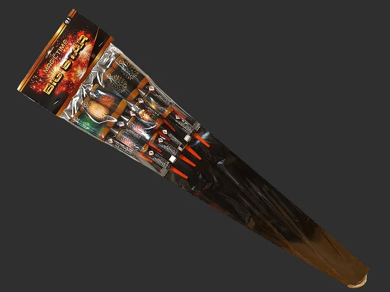 9 rakiet w zestawie. Mix różnokolorowych efektów.