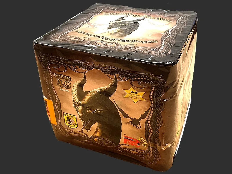 Kolekcja Smoków od Czeskiego importera Pyro Moravia. 49 strzałów Kaliber 30mm Brokatowe palmy z tytanowymi chrysantemami.