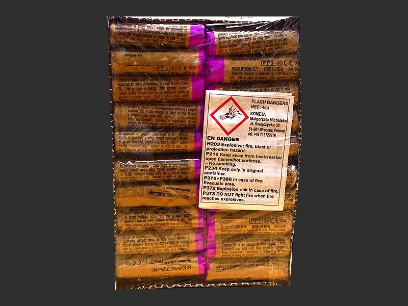 Opakowanie 20 sztuk petard lontowych z flarą. Efekt: huk