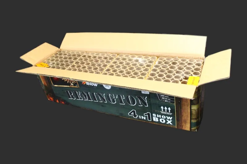 Zestaw 4 wyrzutni odpalany jednym lontem. 144 strzały w kalibrze 25 mm od firmy Piromax. Gwarancja jakości i pięknego widowiska.