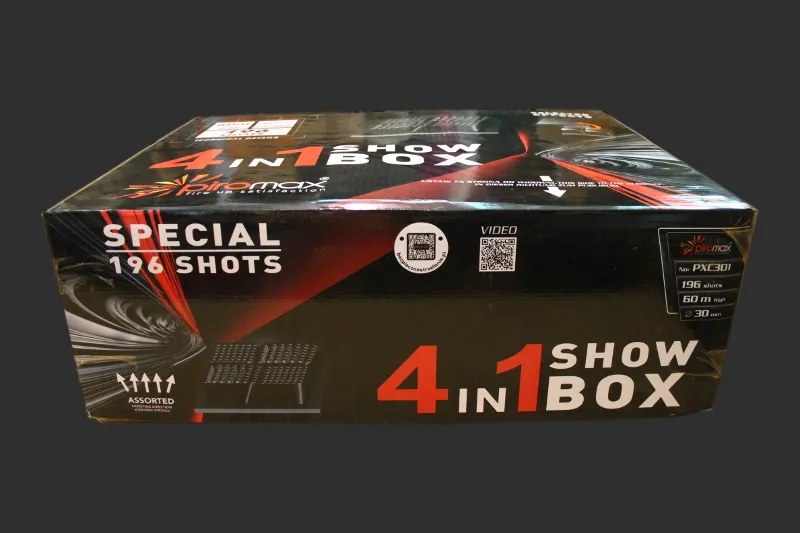 Efekty: Czerwony ogon z brokatową koroną i czerwonymi gwiazdami, zielony ogon z brokatową koroną i zielonymi gwiazdami, czerwony ogon z zielonymi gwiazdami i białym migotaniem, zielony ogon z purpurowymi gwiazdami i zielonym migotaniem, niebieski ogon z czerwonymi gwiazdami i chryzantemą. Niebieski ogon z złotą migoczącą wierzbą i zielonymi migoczącymi gwiazdkami. Czerwony ogon z niebieskimi gwiazdami i złotym migotaniem, zielony ogon z purpurowymi gwiazdami i złotym migotaniem, czerwona palma z trzeszczeniem, zielona palma z trzeszczeniem, niebieski ogon z broktatową koroną i trzeszczeniem, brokatowy ogon z brokatową koroną i czerwonym migotaniem, brokatowy ogon z brokatową koroną i zielonym migotaniem, niebieski ogon ze złotą wierzbą i zielonym migotaniem