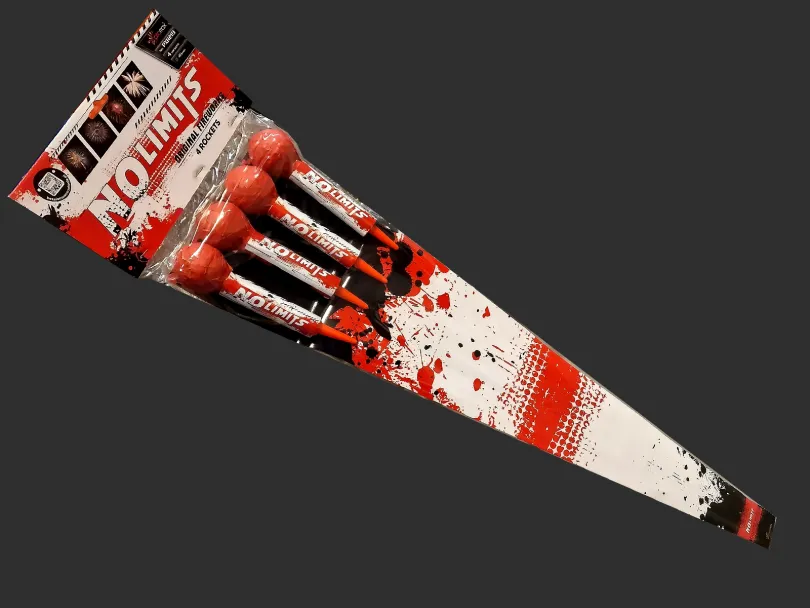 Absolutna nowość od firmy Piromax. 4 rakiety z kolekcji No Limits zapewnią widowiskowe show. Rakiety w kalibrze 45 mm to gwarancja dużego efektu na niebie.