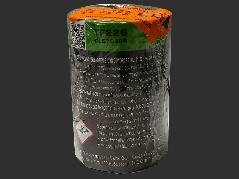 Musi być sprzedawane w opakowaniu. Tylko do stosowania na wolnym powietrzu. Minimalna bezpieczna odległość: 15m. Widzowie powinni znajdować się w odległości co najmniej 8m. Położyć pojedynczo na ziemi. Stojąc z boku, zapalić system inicjujący na jego końcu i oddalić się natychmiast na odległość co najmniej 15m. Zakaz sprzedaży osobom poniżej 18-go roku życia! Stosować na niepalnej powierzchni!
