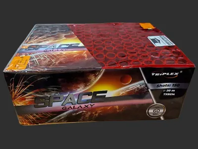 Bateria Space to gotowy pokaz 150 strzałów o różnokolorowych efektach i układach odpalania.