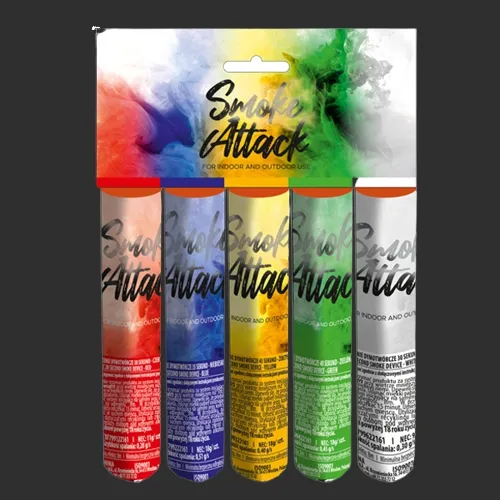 Zestaw 5 dymów: żółty, biały, niebieski zielony, czerwony.