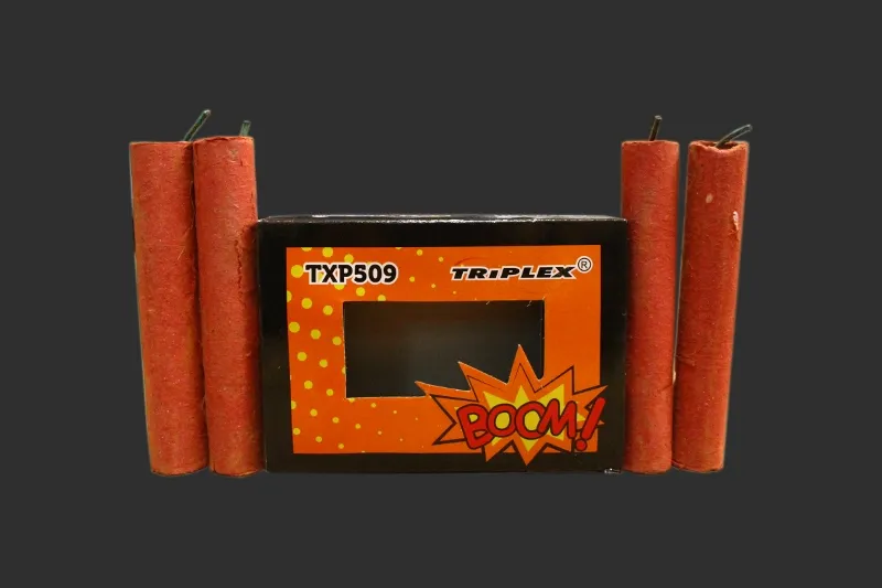 4 petardy w opakowaniu. Zawartość prochu NEC: 4,8g/op. Wymiary pojedyńczej petardy długość 13 cm. średnica 2 cm.