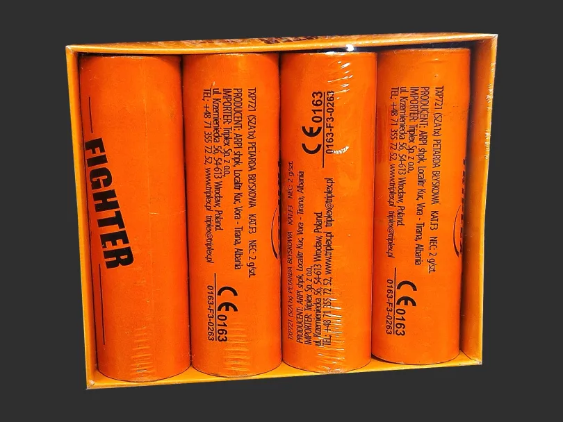 Musi być sprzedawane w opakowaniu. Tylko do stosowania na wolnym powietrzu. Minimalna bezpieczna odległość: 8m. Położyć pojedynczo na ziemi. Stojąc z boku, zapalić system inicjujący na jego końcu i oddalić się natychmiast na odległość co najmniej 8 m. Widzowie powinni znajdować się w odległości co najmniej 8m. Zakaz sprzedaży osobom poniżej 18-go roku życia! Stosować na niepalnej powierzchni!