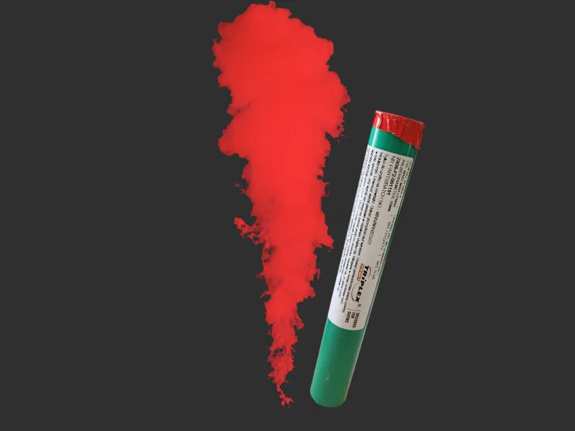 Mina dymna w kolorze czerwonym. Intensywny jednorazowy wyrzut dymu w kolorze czerwonym.