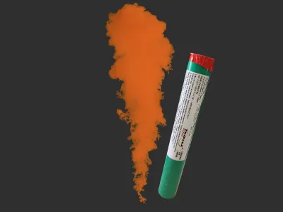 Mina dymna w kolorze pomarańczowym. Intensywny jednorazowy wyrzut dymu w kolorze pomarańczowym.