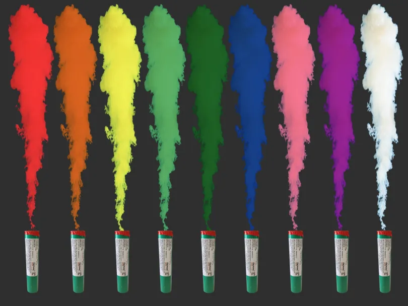 Pakiet min dymnych (9 sztuk) w kolorze tęczy. Intensywny jednorazowy wyrzut dymu w 9 kolorach.