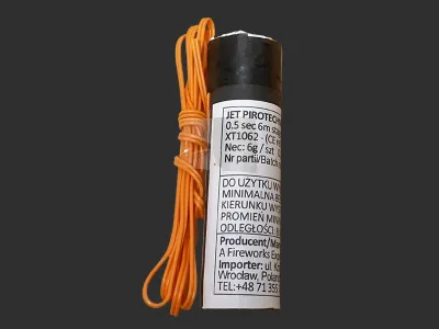Musi być sprzedawane w opakowaniu. Tylko do stosowania na wolnym powietrzu. Minimalna bezpieczna odległość: 8m. Widzowie powinni znajdować się w odległości co najmniej 8m. Położyć pojedynczo na ziemi. Stojąc z boku, zapalić system inicjujący na jego końcu i oddalić się natychmiast na odległość co najmniej 8m. Zakaz sprzedaży osobom poniżej 18-go roku życia! Stosować na niepalnej powierzchni!